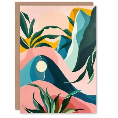 Artery8 Greeting Card Abstract Tropical Leaves Mountains Pastel Colour Blank For Him Or Her Art Birthday