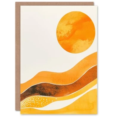 Artery8 Greeting Card Abstract Yellow Orange Sun Landscape Painting Blank For Him Or Her Art Birthday