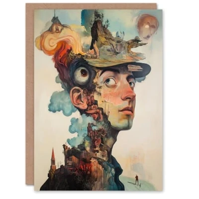 Artery8 Greeting Card Active Imagination Surreal Conceptual Portrait Blank For Him Or Her Art Birthday