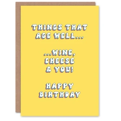 Artery8 Greeting Card Age Well Like Wine and Cheese Bright Fun For Her Gran Sister Niece Daughter Wife Woman Birthday