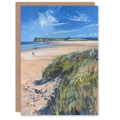Artery8 Greeting Card Alnmouth Beach Painting Spring Coastal England Blank For Him Or Her Art Birthday
