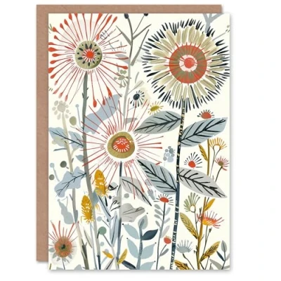 Artery8 Greeting Card Aster Flower Painting Wildflowers Spring Folk Art For Her Woman Birthday