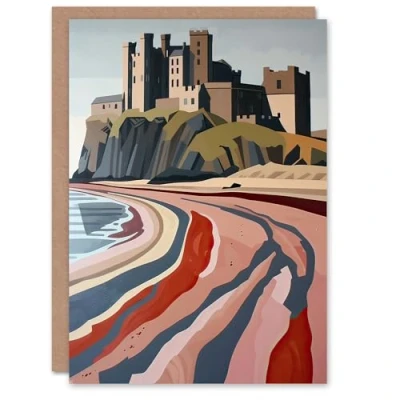 Artery8 Greeting Card Bamburgh Castle Block Print Artwork Northumbria Blank For Him Or Her Art Birthday