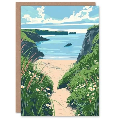 Artery8 Greeting Card Barafundle Bay Seaside Spring Flowers Wales Beach Blank For All Him Or Her Art Birthday