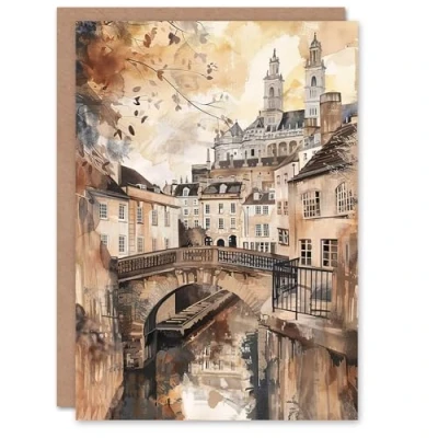 Artery8 Greeting Card Bath England Historic Canal Watercolour Blank For All Him Or Her Art Birthday