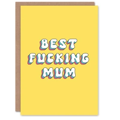 Artery8 Greeting Card Best F*cking Mum Bright Retro Yellow For Mummy Mom Birthday
