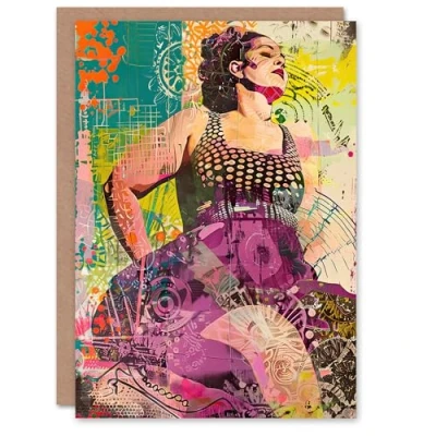 Artery8 Greeting Card Big is Beautiful Bright Colourful Woman Portrait Blank For Him Or Her Art Birthday