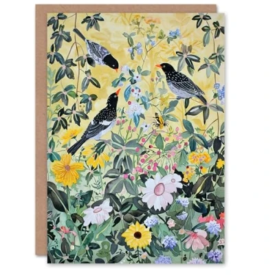 Artery8 Greeting Card Birds in Blooming Spring Wildflower Field For Her Woman Birthday