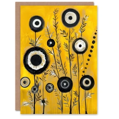 Artery8 Greeting Card Black Yellow Abstract Geometric Wildflowers For Her Woman Birthday