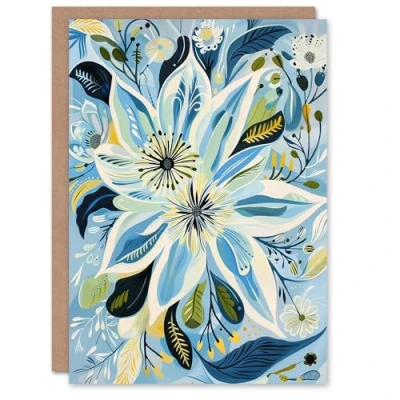 Artery8 Greeting Card Blue Abstract Wildflowers Painting Floral For Her Woman Birthday