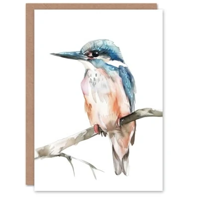 Artery8 Greeting Card Blue Kingfisher Bird Modern Watercolour Simple Blank For All Him Or Her Art Birthday