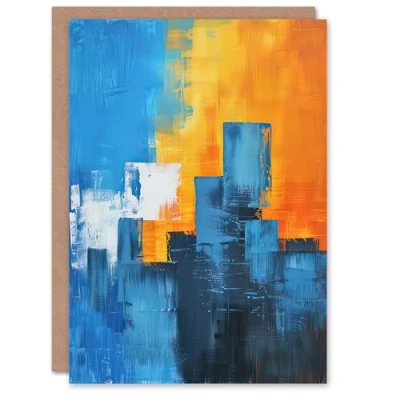 Artery8 Greeting Card Blue Orange Squares Abstract Cityscape Sunrise Blank For Him Or Her Art Birthday