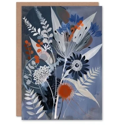 Artery8 Greeting Card Blue Wildflower Spray Bouquet Painting Floral For Her Woman Birthday