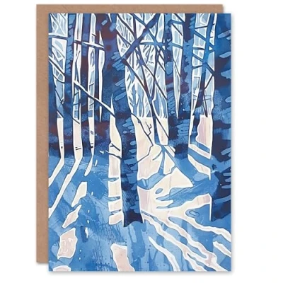 Artery8 Greeting Card Blue Winter Birch Forest Trees Snow Shadow Blank For Him Or Her Art Birthday