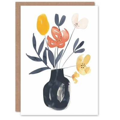 Artery8 Greeting Card Boho Abstract Watercolour Flower Bouquet in Vase For Her Woman Mother's Day