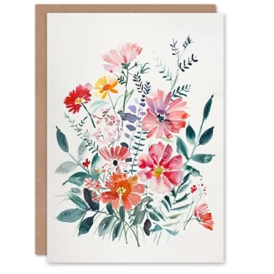 Artery8 Greeting Card Boho Spring Flower Bouquet Pastel Watercolour For Her Woman Birthday