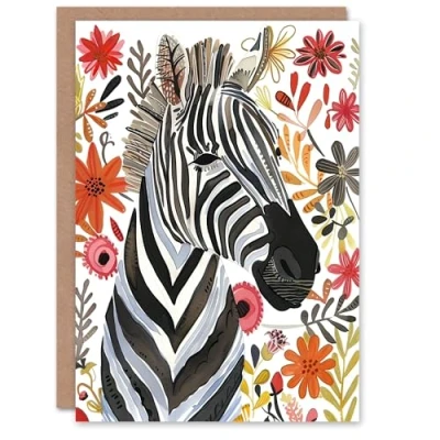 Artery8 Greeting Card Boho Zebra Bright Floral Watercolour Painting For Her Woman Birthday