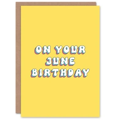 Artery8 Greeting Card Born in June Fun Bright Retro Yellow For Her Woman Wife Sister Daughter Mum Birthday