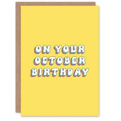 Artery8 Greeting Card Born in October Fun Bright Retro Yellow For Her Gran Sister Niece Daughter Wife Woman Birthday