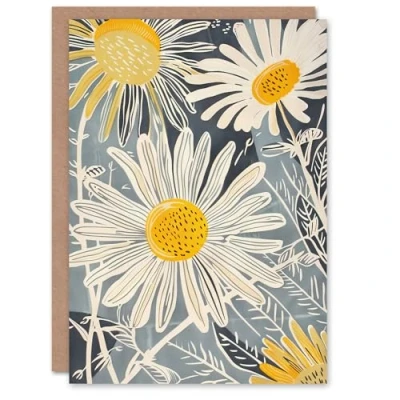 Artery8 Greeting Card Bright Daisy Flowers Bloom Artwork Light Floral For Her Woman Birthday