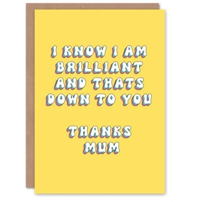Artery8 Greeting Card Brilliant Because of You Bright Retro Yellow For Mum Mummy Mom Birthday