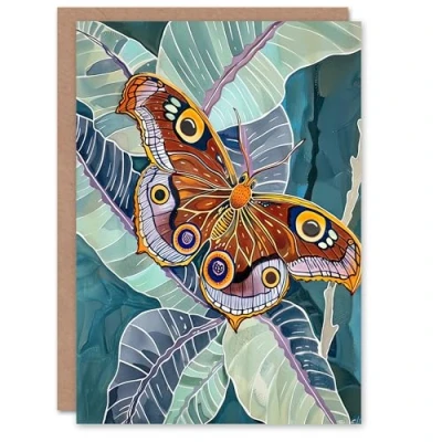 Artery8 Greeting Card Butterfly on Palm Leaf Painting Tropical Exotic For Her Woman Birthday