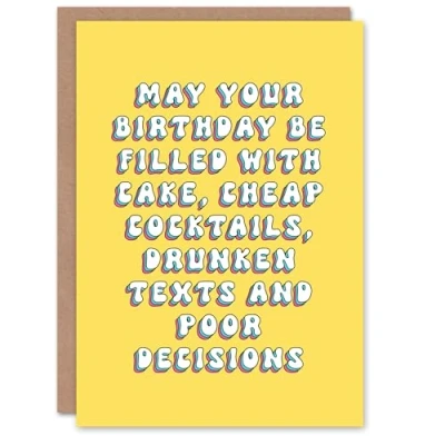 Artery8 Greeting Card Cake Drinks and Poor Decisions Funny Bright For Her Woman Best Friend Birthday