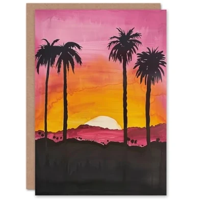 Artery8 Greeting Card California Sunset Sky Orange Pink Setting Sun Blank For Him Or Her Art Birthday