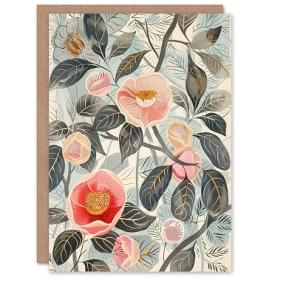 Artery8 Greeting Card Camellia Blooming Flowers Botanical Painting For Her Woman Birthday