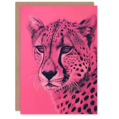 Artery8 Greeting Card Cheetah Hot Pink Pencil Art Animal Portrait Blank For Him Or Her Birthday