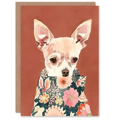 Artery8 Greeting Card Chihuahua With Floral Coat Dog Lover Watercolour For Her Woman Birthday