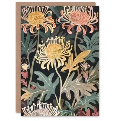 Artery8 Greeting Card Chrysanthemum Flowers in Bloom Artwork Dark For Her Woman Birthday