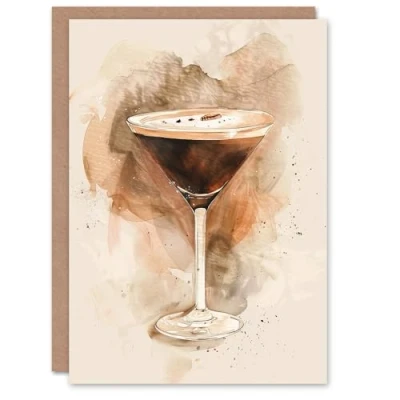 Artery8 Greeting Card Classic Espresso Martini Cocktail Watercolour Blank For All Him Or Her Art Birthday