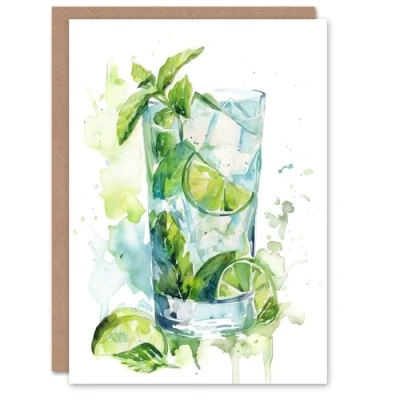 Artery8 Greeting Card Classic Mojito Cocktail Modern Watercolour Mint Blank For All Him Or Her Art Birthday