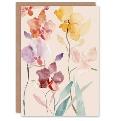 Artery8 Greeting Card Colourful Abstract Orchid Flowers Watercolour Blank For All Him Or Her Art Birthday