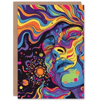 Artery8 Greeting Card Cosmic Trance Meditation Psychedelic Portrait Blank For Him Or Her Art Birthday