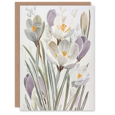 Artery8 Greeting Card Crocus Flowers in Bloom Artwork Pastel Bouquet For Her Woman Birthday