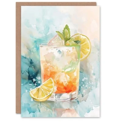 Artery8 Greeting Card Cuba Libre Cocktail Watercolour Tropical Summer Blank For All Him Or Her Art Birthday