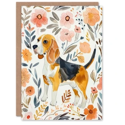 Artery8 Greeting Card Cute Beagle Puppy Dog Lover Floral Watercolour For Her Woman Birthday