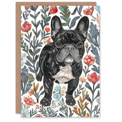 Artery8 Greeting Card Cute French Bulldog in Flower Garden Dog Lover Blank For Him Or Her Art Birthday