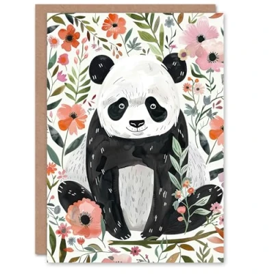 Artery8 Greeting Card Cute Panda with Flowers Boho Floral Watercolour For Her Woman Birthday