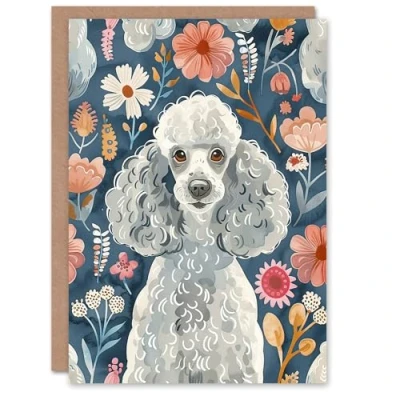 Artery8 Greeting Card Cute Poodle Floral Portrait Blue Pink Dog Lover For Her Woman Birthday