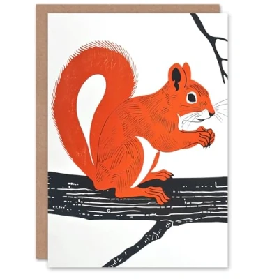Artery8 Greeting Card Cute Red Squirrel on Tree Branch Bright Design Blank For Him Or Her Art Birthday