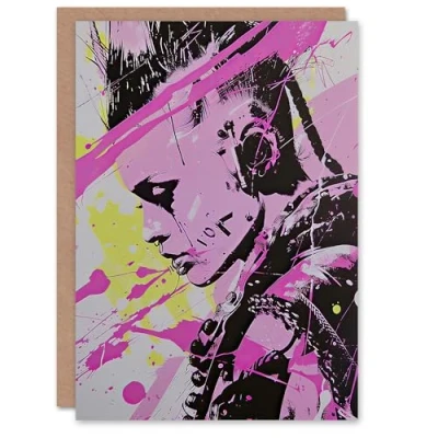 Artery8 Greeting Card Cyberpunk Woman Portrait Hot Pink Modern Blank For Him Or Her Art Birthday