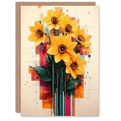 Artery8 Greeting Card Daffodil Bouquet Modern Floral Abstract Painting For Her Woman Birthday