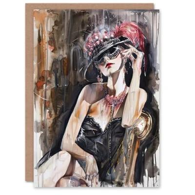 Artery8 Greeting Card Dark Modern Flapper Girl Venetian Mask Portrait For Her Woman Birthday