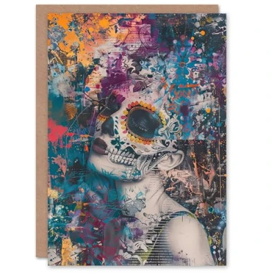 Artery8 Greeting Card Day of the Dead Woman Portrait Beauty Skull Blank For Him Or Her Art Birthday
