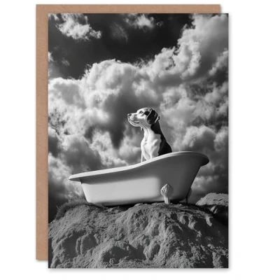 Artery8 Greeting Card Dog Lover Beagle Bathtub Black White Atmospheric Blank For Him Or Her Art Birthday