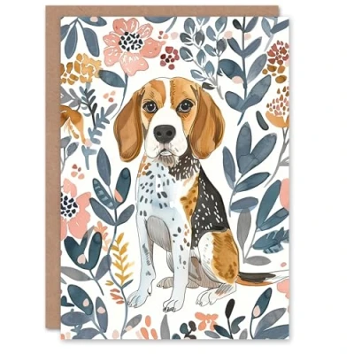 Artery8 Greeting Card Dog Lover Beagle in Flower Garden Watercolour For Her Woman Birthday