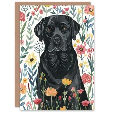 Artery8 Greeting Card Dog Lover Black Labrador in Wildflower Field Blank For Him Or Her Art Birthday